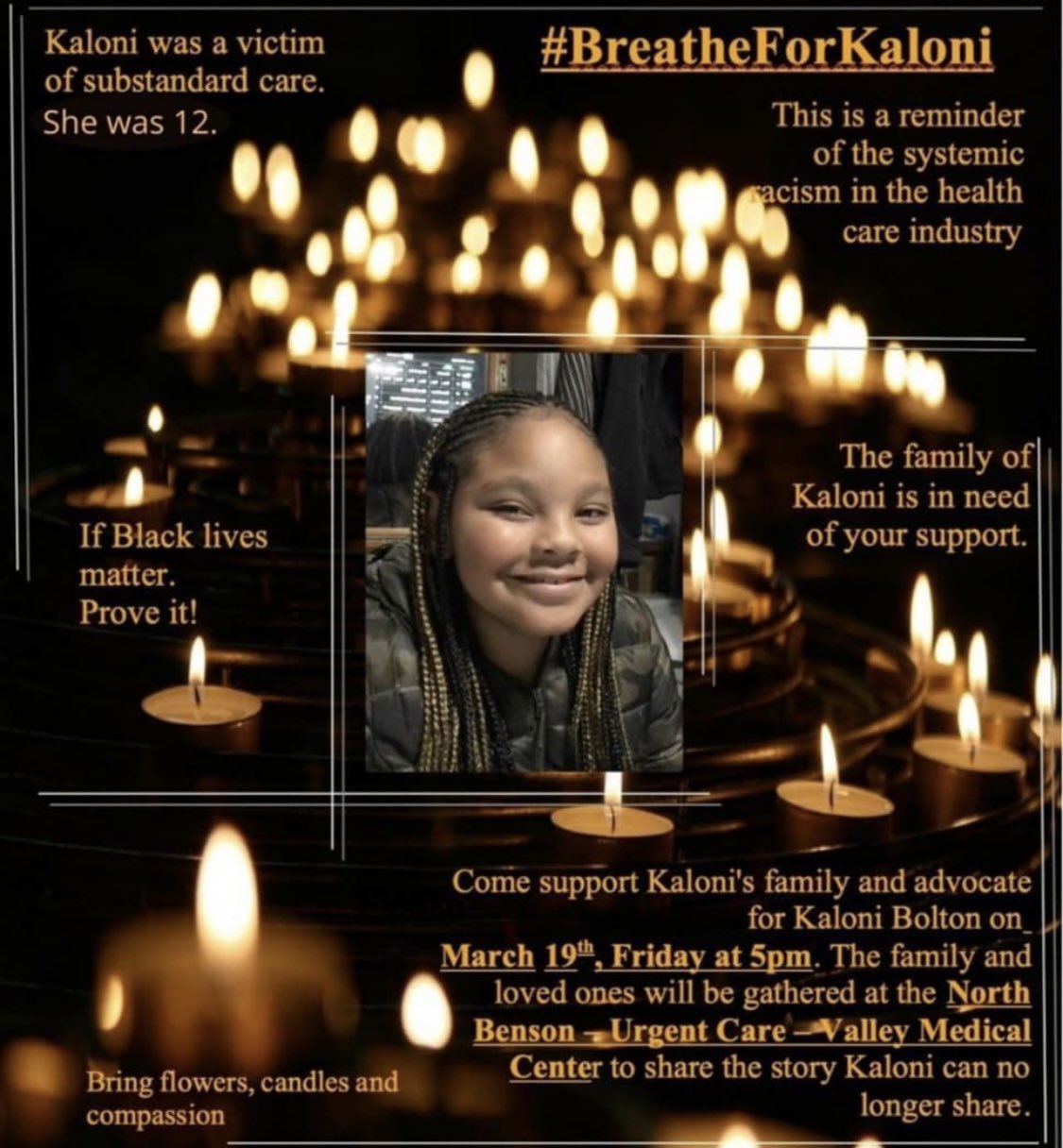 Black Action Coalition On Twitter Vigil For Kaloni Bolton This Friday At 5 Pm North Benson Valley Medical Urgent Care Renton Seattleprotests Seattleprotestcomms Https T Co Us0ewvjmbk Twitter